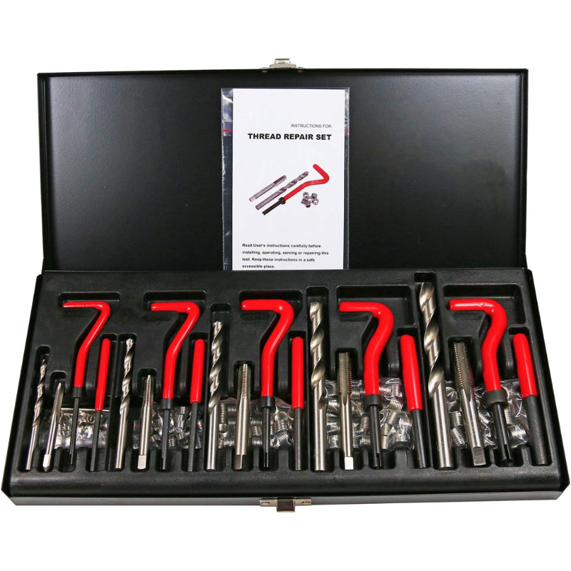 Restore damaged or stripped threads with confidence using this 131-piece Metric Thread Repair Kit. Designed for professional mechanics, DIY enthusiasts, and workshop use, this comprehensive kit includes everything needed to repair internal threads in a variety of materials, especially soft metals.