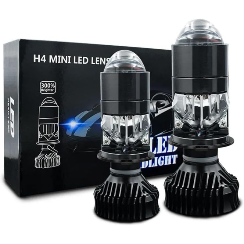 2PCS V9:H4 Mini LED Projector Lens Headlight Bulb – Bright, Waterproof High/Low Beam Conversion Kit