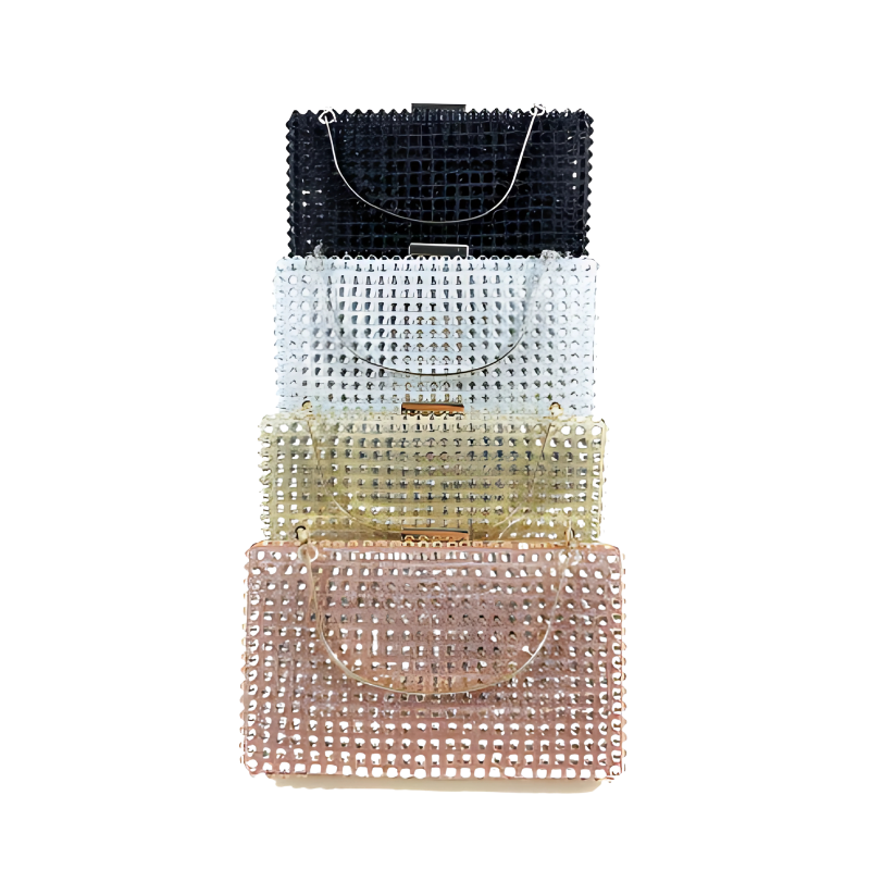 Available in four stunning shades—Classic Black, Crystal White, Champagne Gold, and Rose Pink—this versatile clutch is perfect for weddings, cocktail parties, prom nights, and other glamorous occasions.