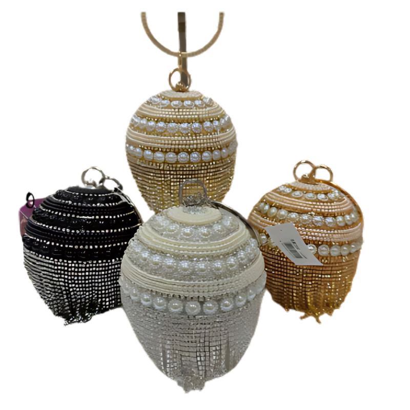 Step out in style with Tidagifts’ Elegant Beaded Pearl Clutch Bag – a true statement piece for glamorous evenings, weddings, and special occasions. Featuring exquisite craftsmanship, this spherical evening purse is adorned with shimmering beads, lustrous pearls, and metallic fringe detailing for a luxurious touch.