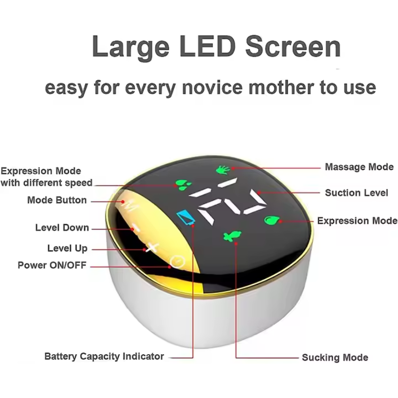 Made from BPA-free, food-grade silicone and PP materials, the breast shields offer a soft, snug fit, enhancing milk expression while preventing discomfort. The painless pumping technology ensures a gentle experience, reducing nipple soreness and engorgement issues. Equipped with an LED touchscreen display, you can easily adjust settings to match your comfort level. The built-in USB rechargeable lithium battery provides long-lasting power, allowing multiple pumping sessions on a single charge.
