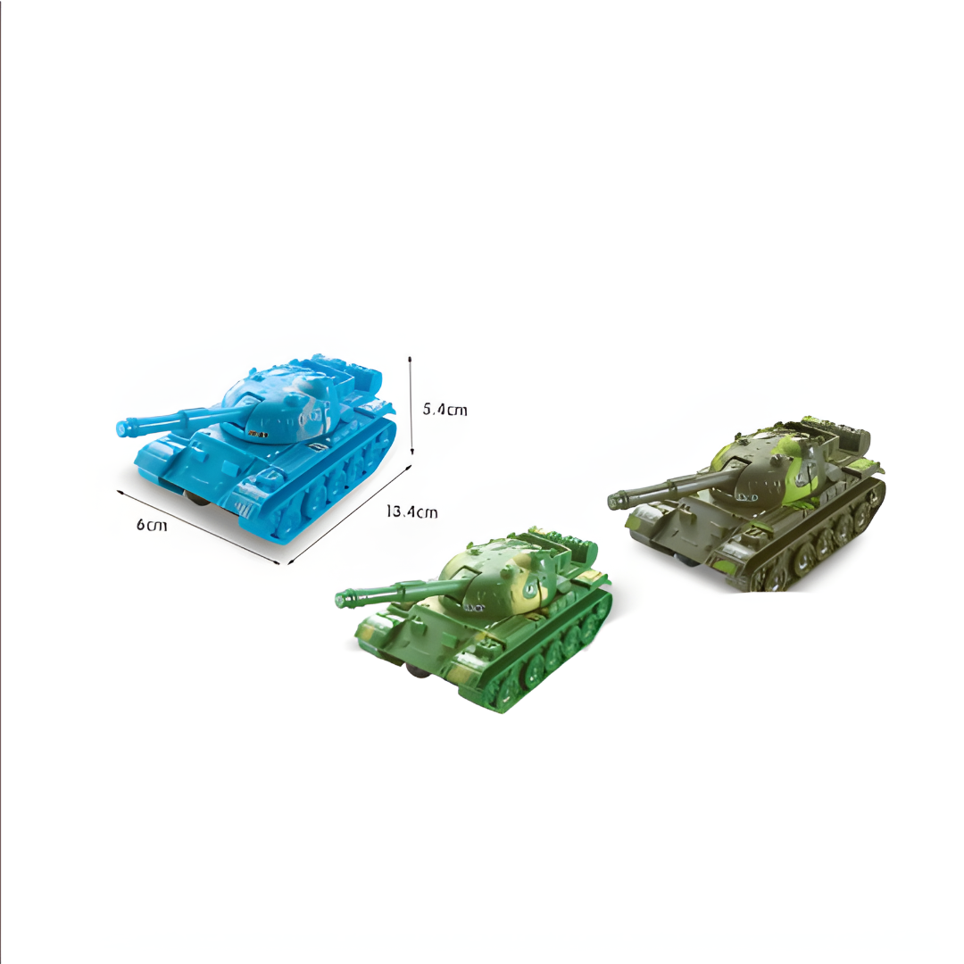📦 Value Pack: Includes 10 mini tank toys (13.4cm x 6cm x 5.4cm each).