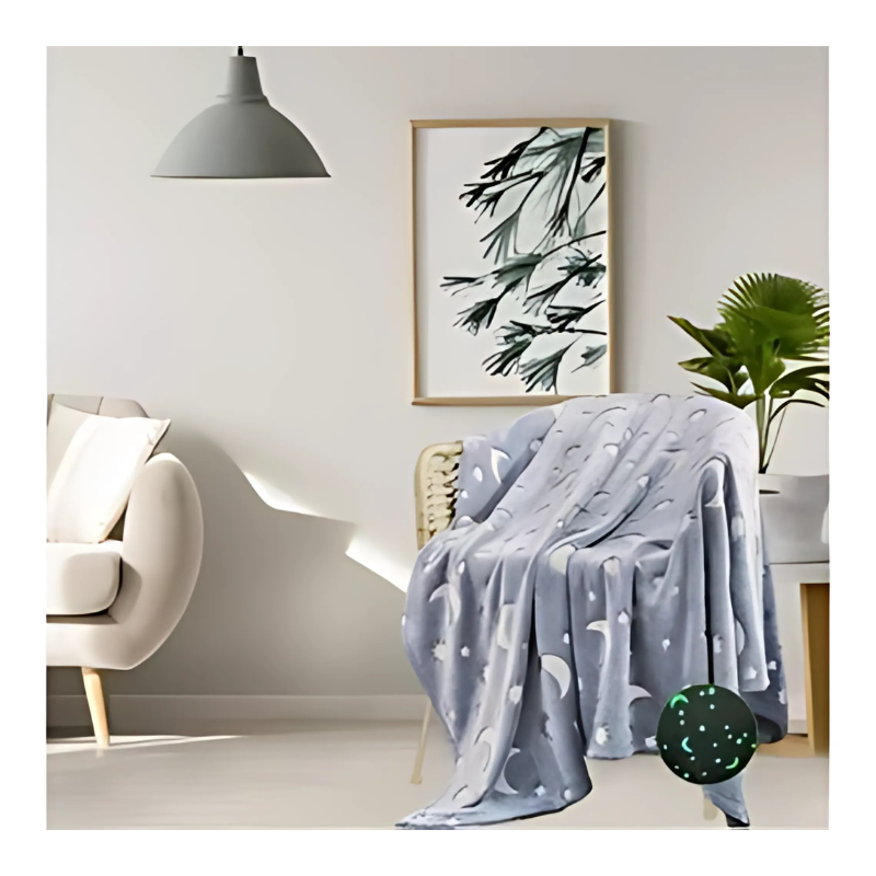 Give your child a cozy, magical sleep experience with this 3D Printed Glow-in-the-Dark Fleece Blanket, designed for mild winter and cool spring-summer nights. Made from soft, high-quality microfiber and cotton, this multicolored blanket features luminous moons and stars that light up the night after exposure to bright light or sunlight, creating a calming, starry sky in your child’s room. It’s perfect for adding security and warmth, making bedtime a comforting adventure under a glowing starry sky. Lightweight yet warm, this skin-friendly blanket is ideal for snuggling while reading, watching TV, or napping. It’s designed to keep kids warm without overheating, suitable for air-conditioned rooms, and is gentle on sensitive skin with no itching or irritation.