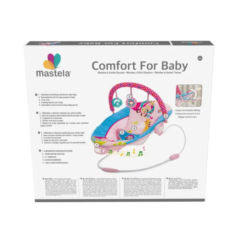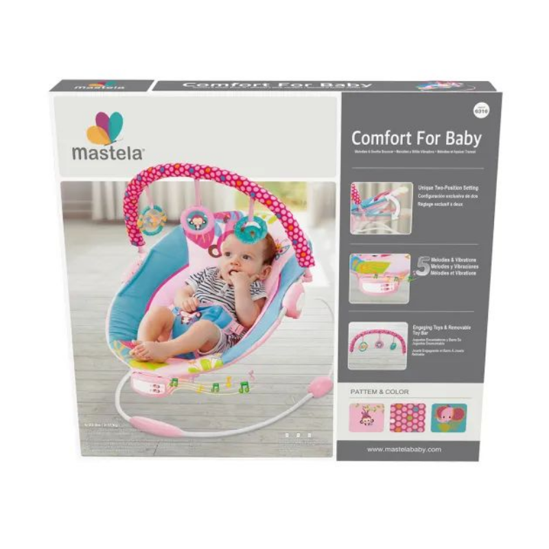 Give your baby the ultimate comfort and entertainment with the Vibrating Baby Bouncer. Designed to provide a soothing and engaging experience, this bouncer features gentle vibrations and calming melodies to relax your little one. The adjustable two-position recline allows your baby to sit up and play or lay back and rest comfortably. A removable toy bar with colorful, interactive toys stimulates your baby’s senses, encouraging motor skill development and hand-eye coordination.