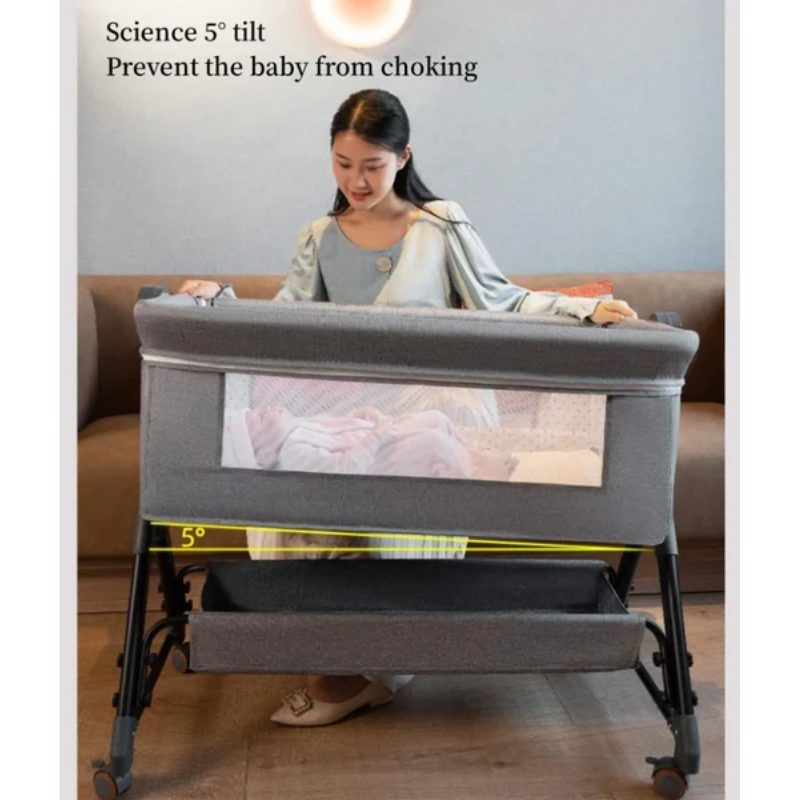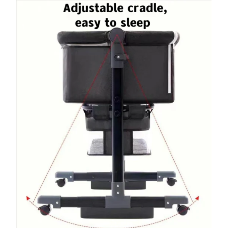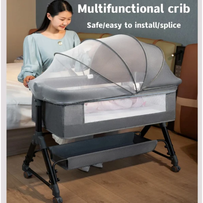 Discover the Multi-Functional Portable Newborn Folding Baby Crib, designed for comfort, safety, and convenience. This 3-in-1 baby cradle functions as a standalone crib, bedside sleeper, and rocking cradle, mimicking a soothing swaying motion to help your baby sleep peacefully. With three adjustable height positions, an incline mode for reflux prevention, and a sturdy, breathable mesh design, this crib ensures maximum comfort and safety. Equipped with silent wheels with brakes, a large storage basket, a side pocket, and a mosquito net, it’s the perfect lightweight, foldable travel crib for parents on the go. Ideal for use at home and while traveling, providing a cozy, secure space for your baby anywhere.