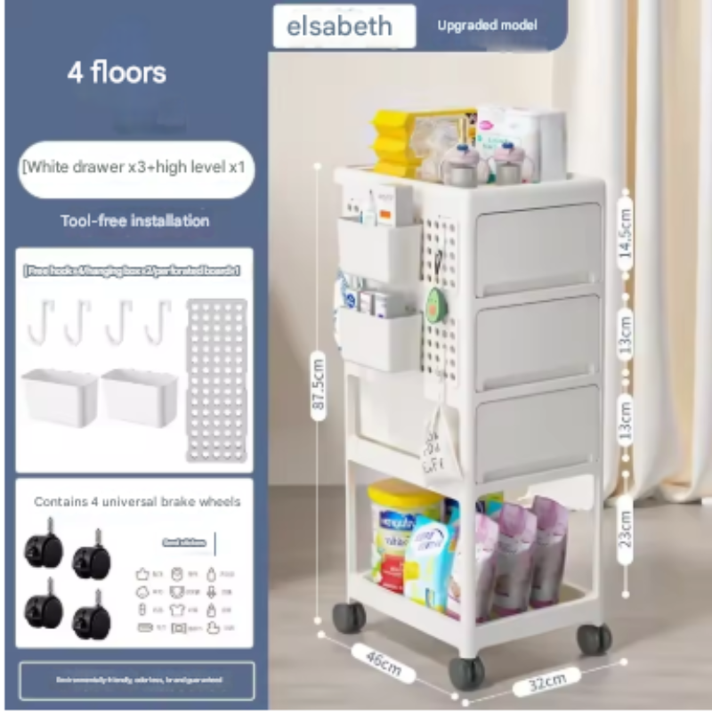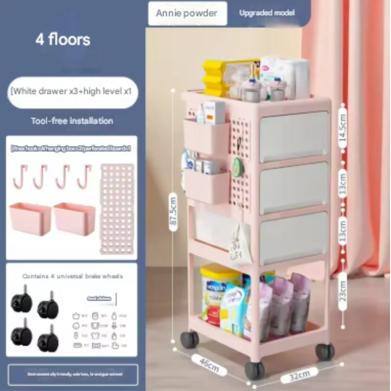 Keep your baby's essentials neatly organized and easily accessible with our Multi-Layer Baby Storage Trolley. Designed for newborns and growing babies, this simple yet functional baby storage cart is perfect for keeping diapers, clothes, towels, and other baby necessities in one place.