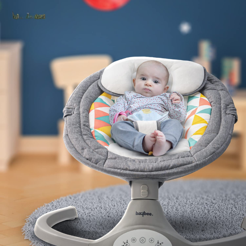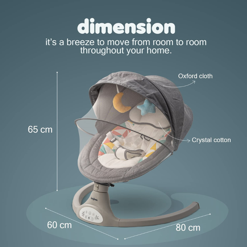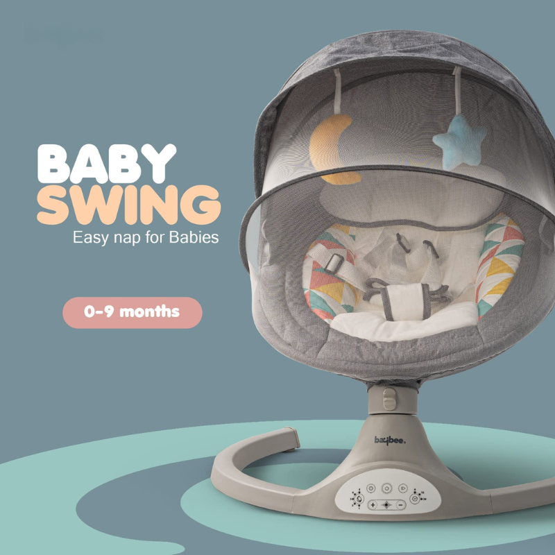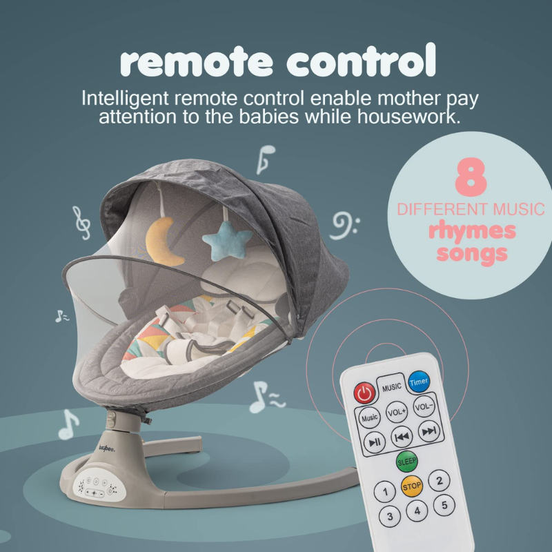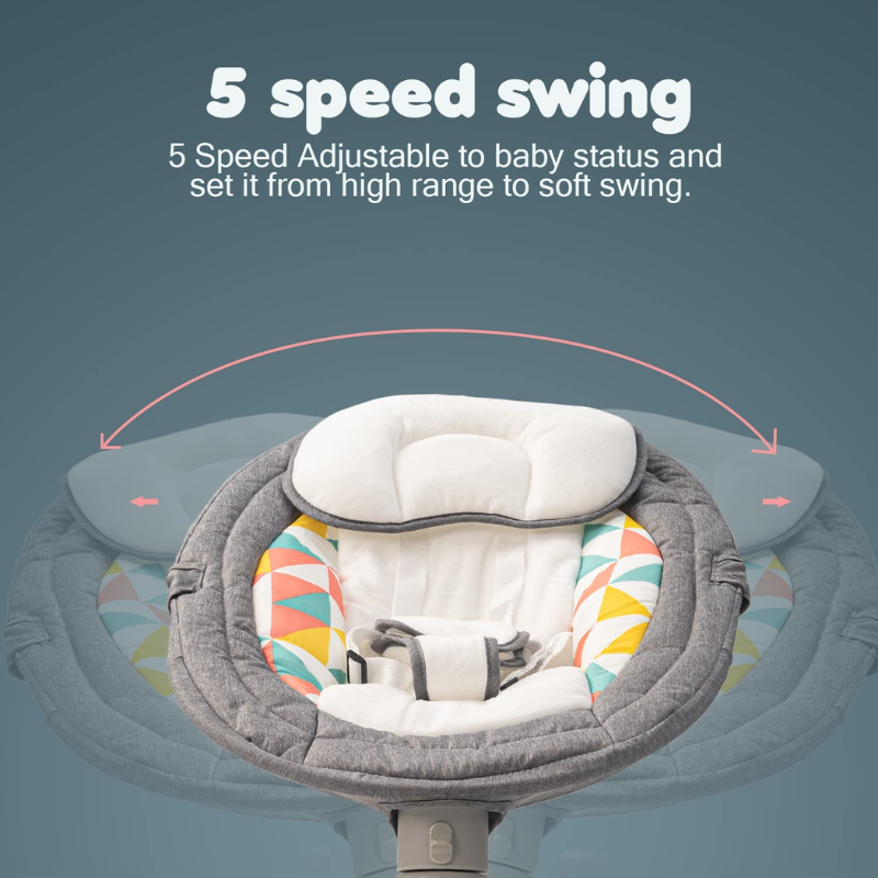 This electric baby swing features five adjustable swing speeds, allowing parents to choose the perfect setting for their baby’s needs. Whether your little one prefers a gentle sway or a more rhythmic motion, the cradle adapts accordingly. The swing can be controlled manually or with a remote control, giving parents added convenience.