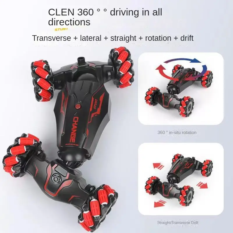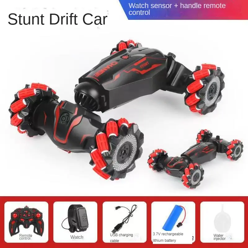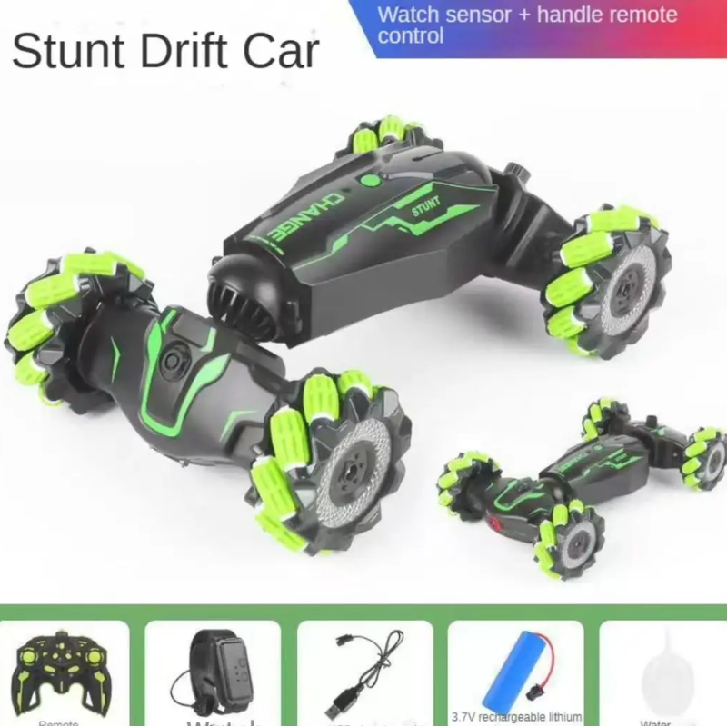 Unleash the excitement of high-speed stunts with the Remote Control Stunt Car, a cutting-edge 2.4G RC car designed for thrill-seekers of all ages. Featuring both gesture-sensing control and a remote control watch, this car allows you to perform dynamic 360° spins, flips, drifts, and side-driving stunts with just a flick of your wrist or a simple button press.