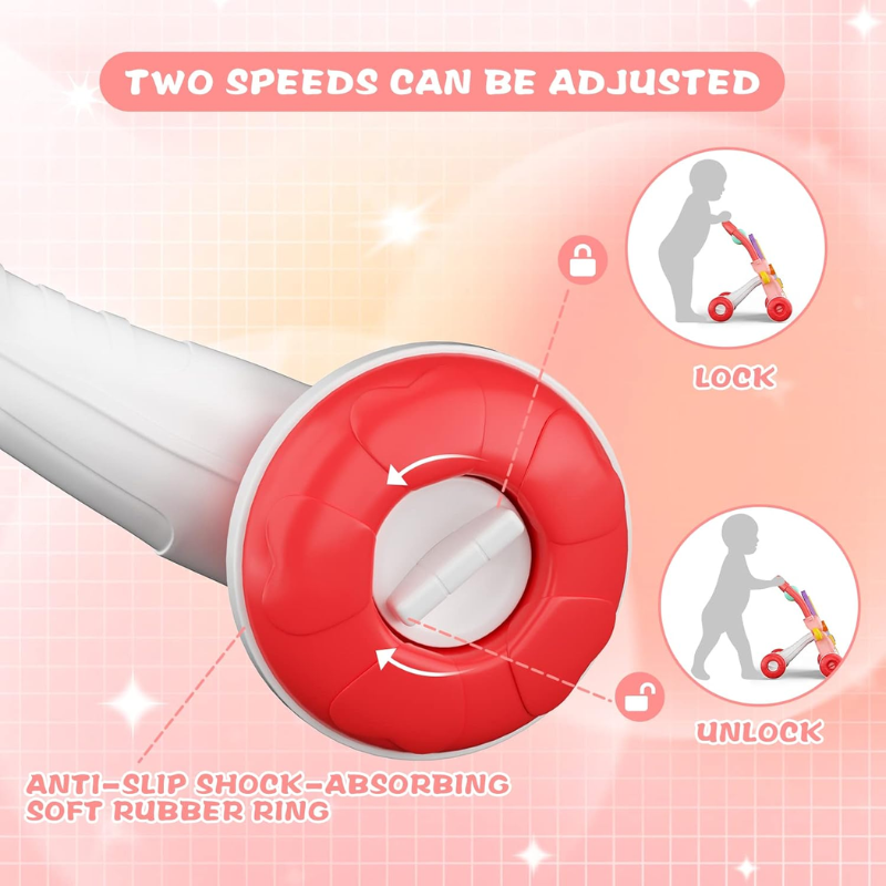 Designed to grow with your baby, the walker features adjustable rear-wheel speeds with non-slip, shock-absorbing rubber rings for safety. Whether your baby is just starting to stand or is confidently walking, the speed control adapts to their needs.