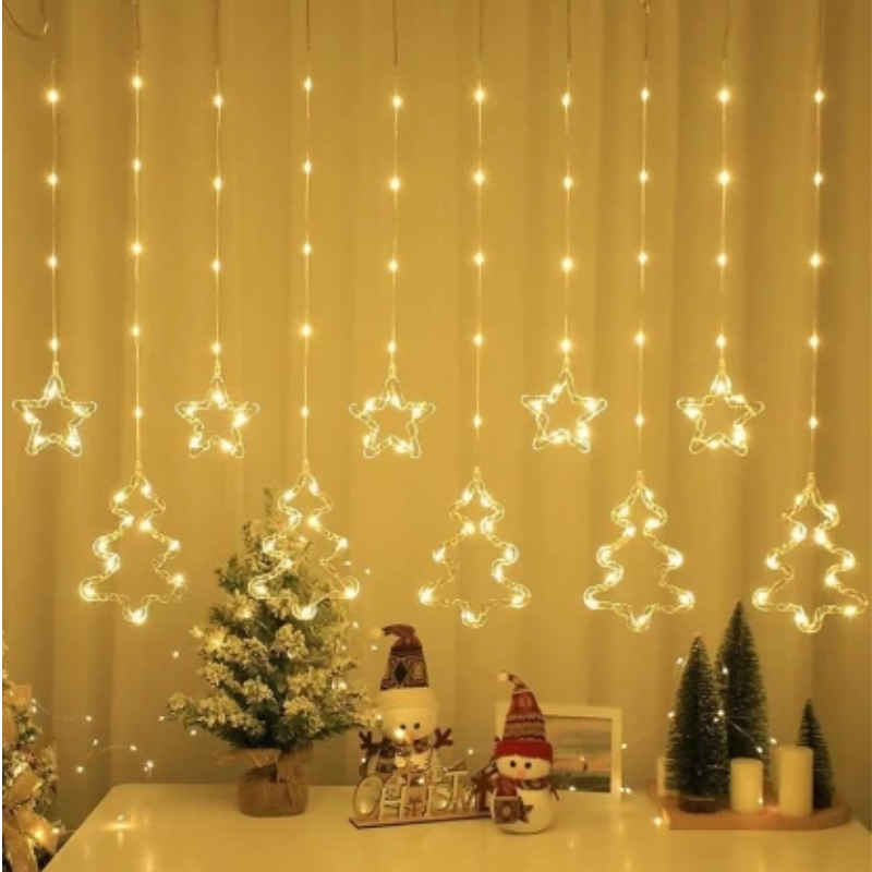 Add a festive glow to your home this holiday season with our Star and Reindeer LED Fairy Curtain Light (3m). Featuring warm white LEDs shaped like stars and reindeer, this charming curtain light transforms any space into a cozy, joyful haven. Perfect for Christmas window decoration, indoor doors, or smooth surfaces like walls, these waterproof fairy lights are easy to install and bring an instant festive vibe.
