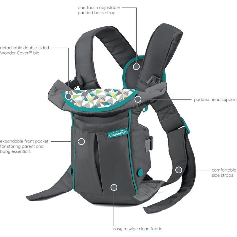 Detachable Wonder Cover Bib: A double-sided bib that protects the carrier from spills, messes, and drool while keeping your baby clean.