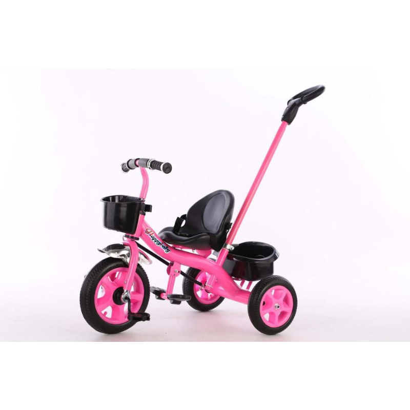 Ideal for introducing your child to the joy of biking, this pink toddler tricycle is not only stylish but also practical, with a storage basket for toys or snacks and an easy-to-use push handle. Whether you're out in the park or taking a stroll around the neighborhood, the Little Miss Poppet Tricycle is the ultimate first bike for your toddler.