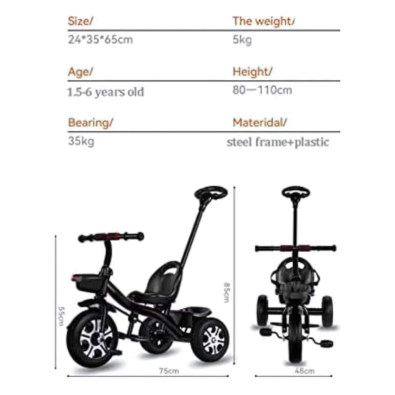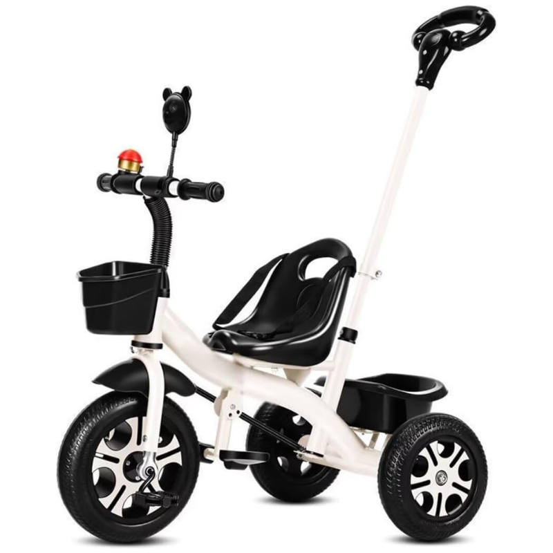 This Toddler Tricycle is available in variants: Red, Pink, White, Black and Blue is the perfect ride for your little one’s outdoor adventures. Designed for children aged 1-3 years, this tricycle for toddlers features a detachable parent handle, allowing parents to safely steer and guide their child while they build confidence in pedaling.